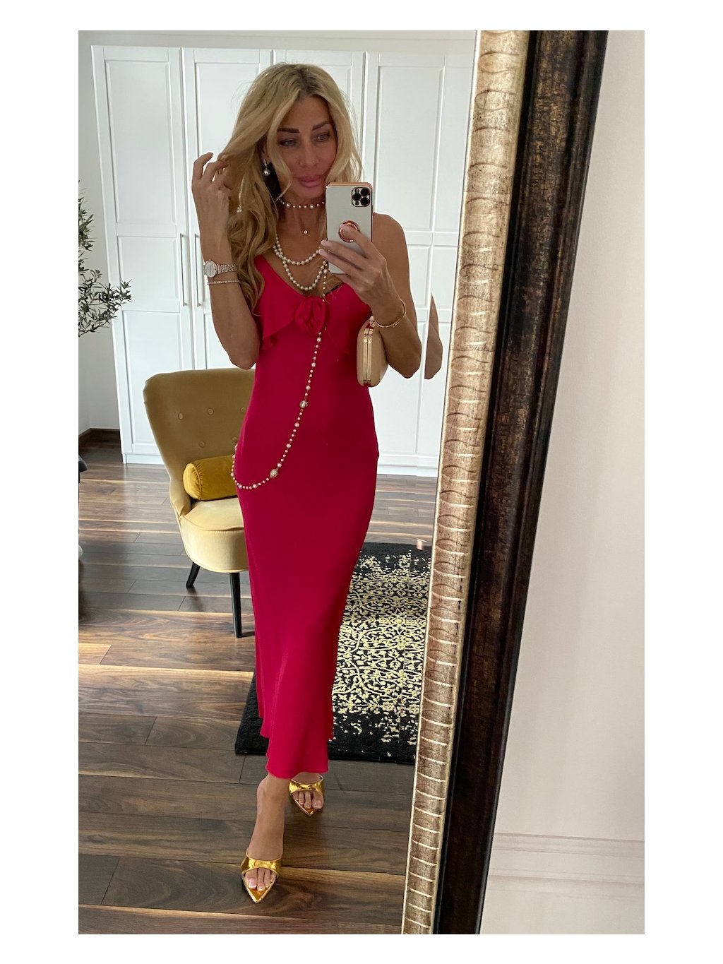 ŠATY SLIP MIDI STRAWBERRY